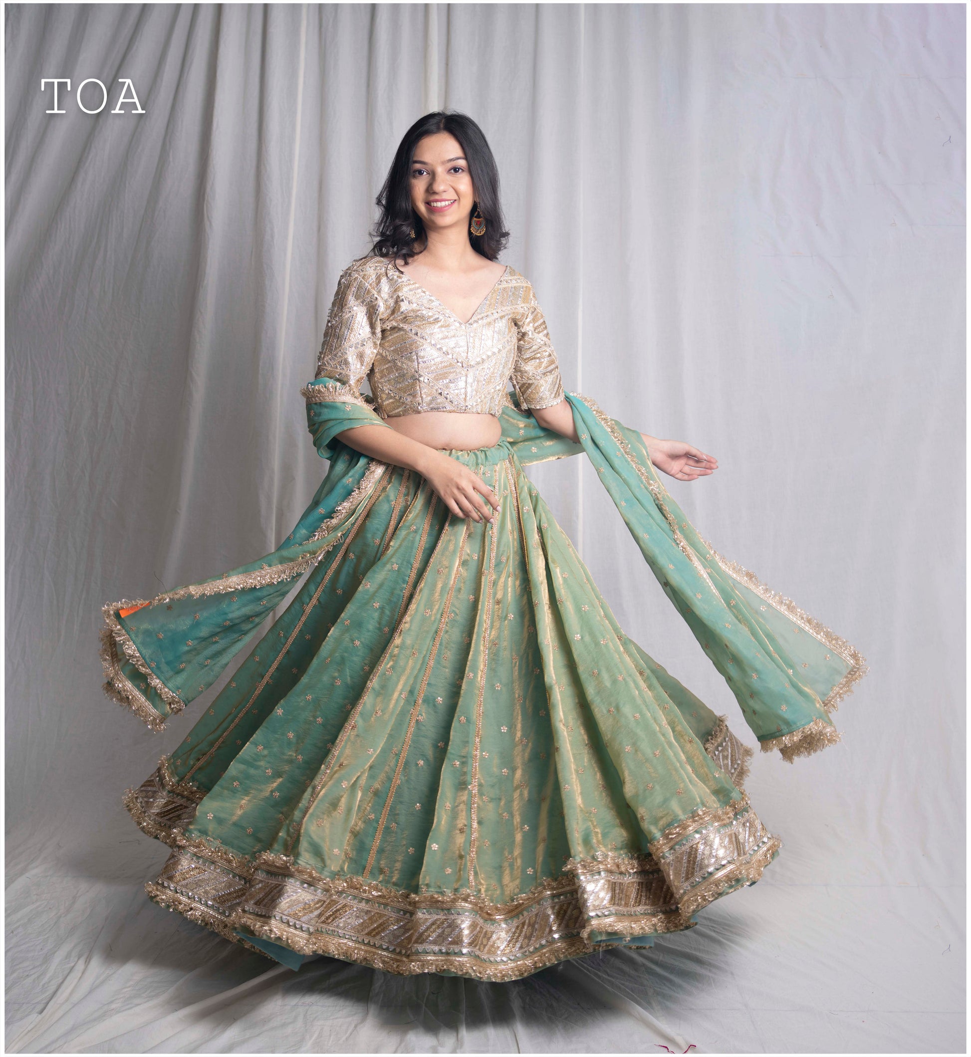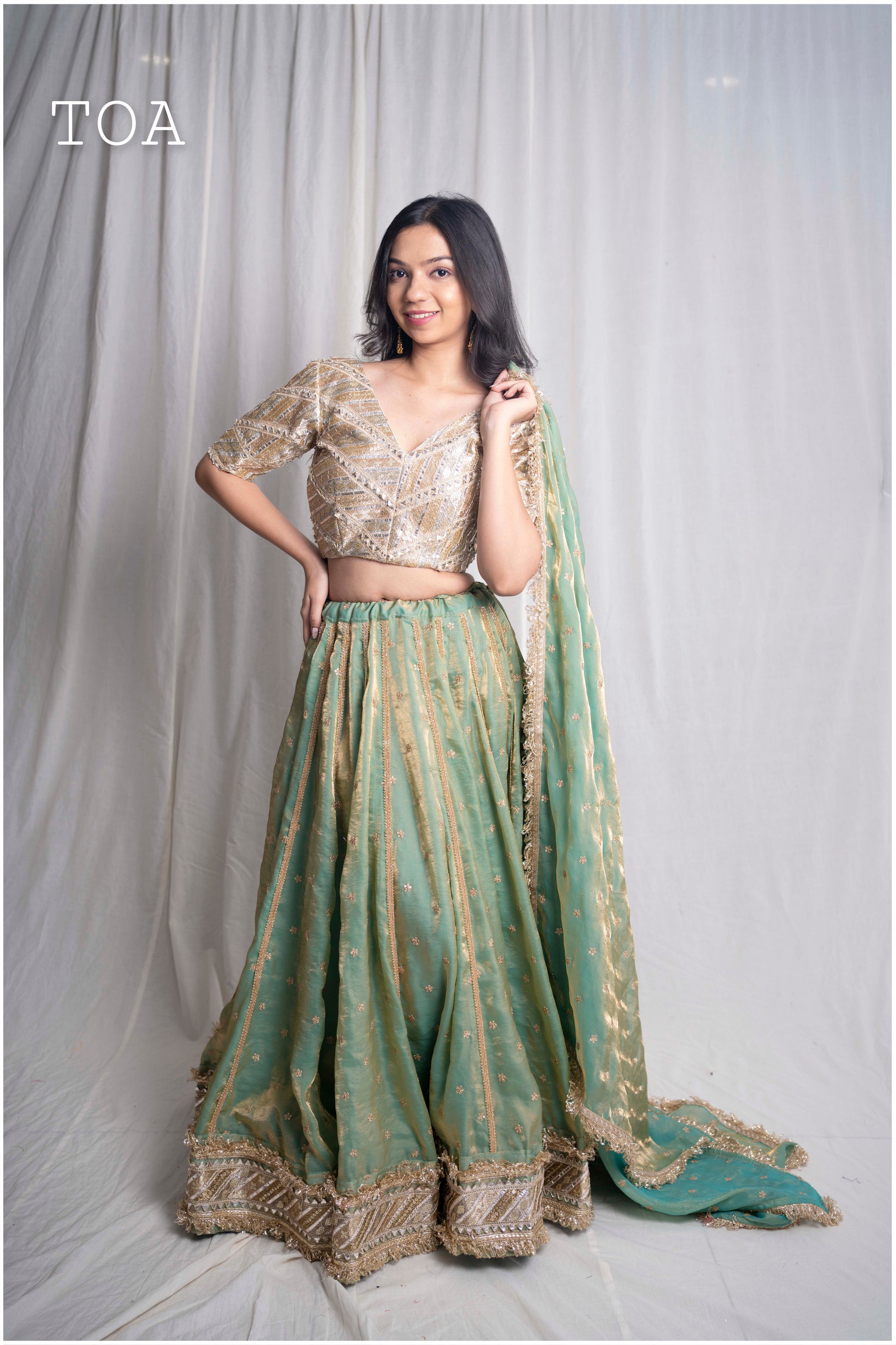Mint Green Kanjivaram Soft Tissue Silk Dual Tone Skirt