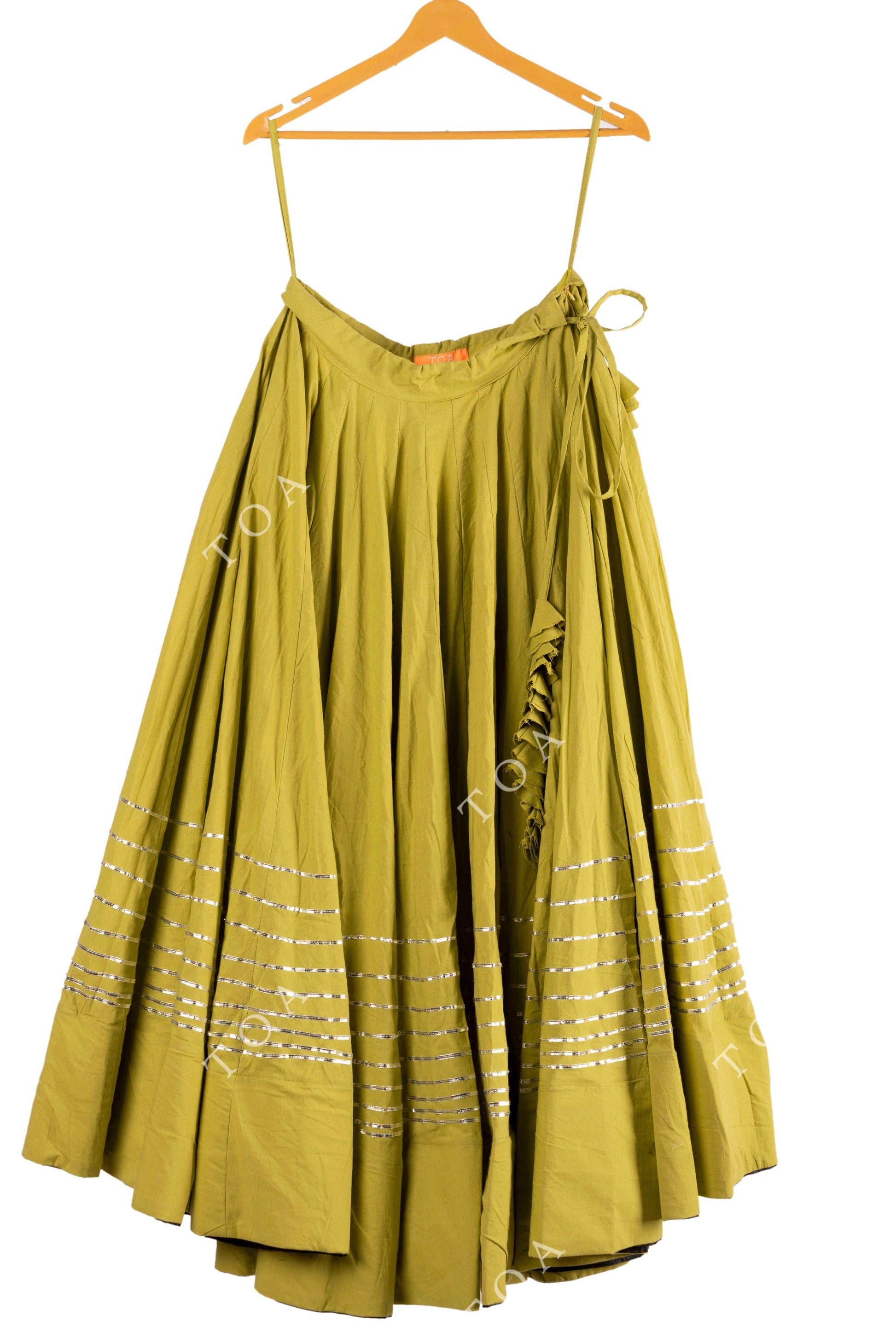 "Discover the elegance of tradition with our collection of 40 exquisite Kallis skirts, boasting a generous flare of over 15 meters. Each skirt features charming pockets and intricate Tui work at the hem, making it a perfect choice not just for Navratri, but for any festive occasion or wedding. Choose from a vibrant array of bright, pastel, and traditional hues to add a touch of grace to your wardrobe."