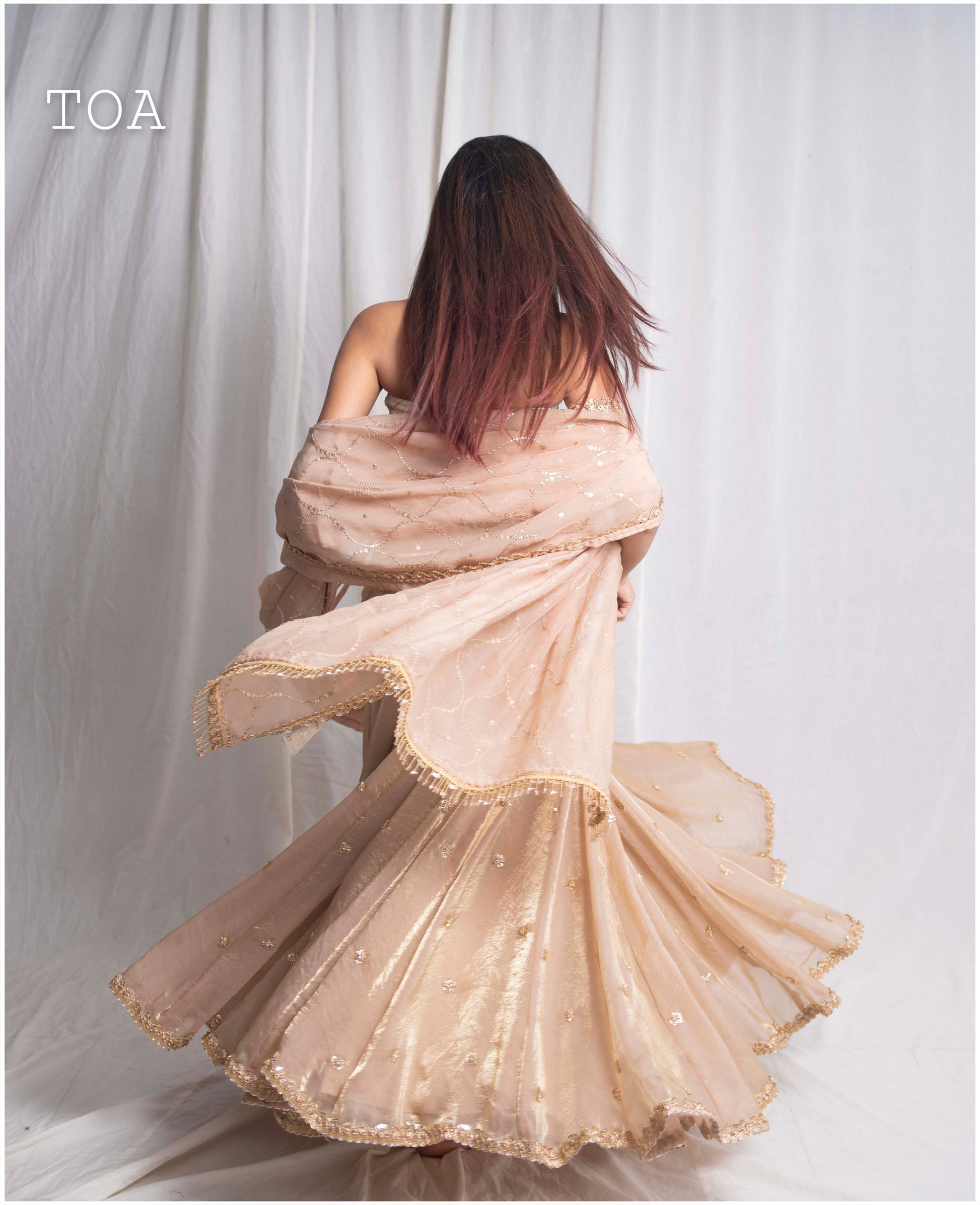 Golden Beige Color Kanjivaram Soft Tissue Silk Dual Tone Skirt
