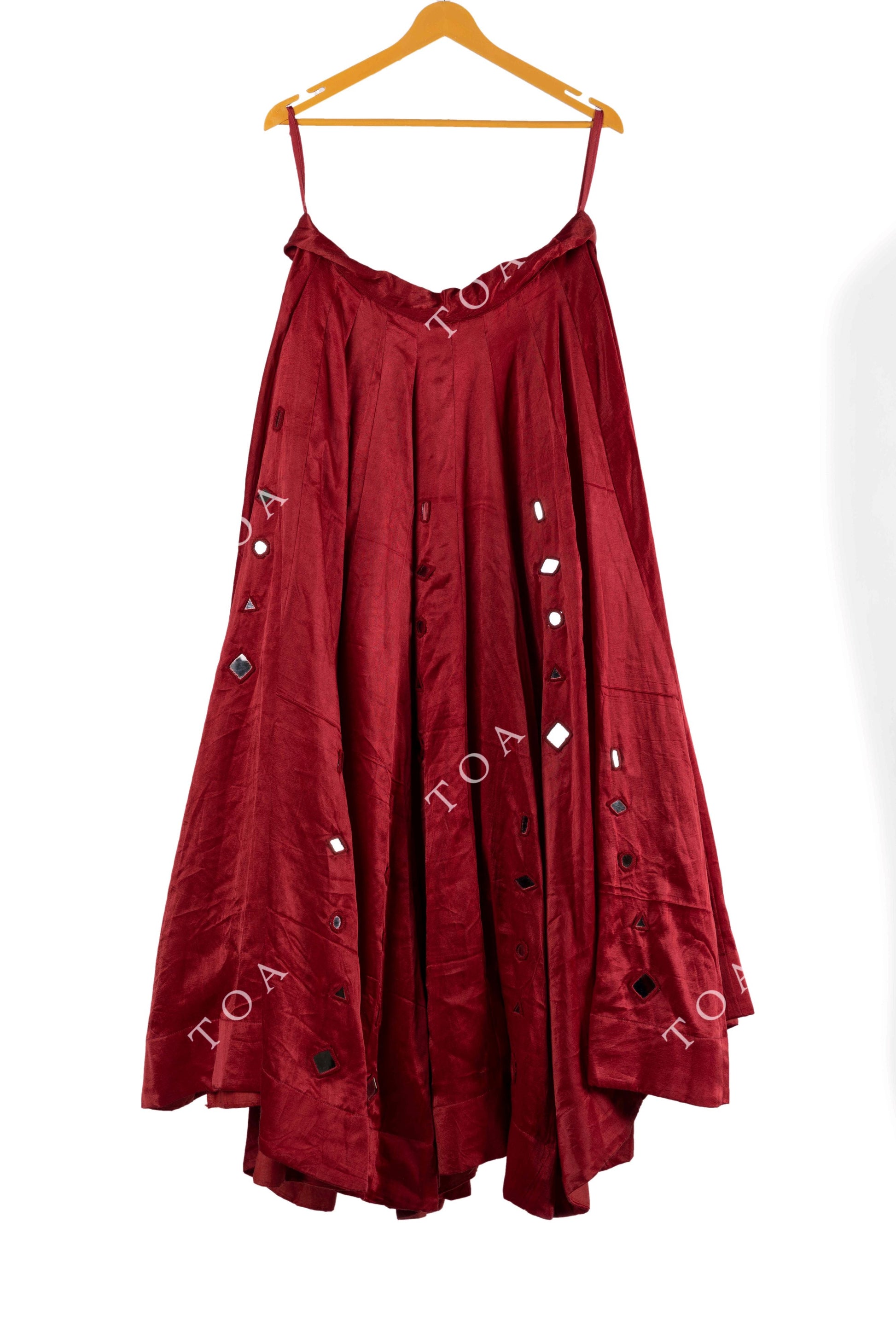 Maroon Red Gajji Mirror Skirt 24 Kalli