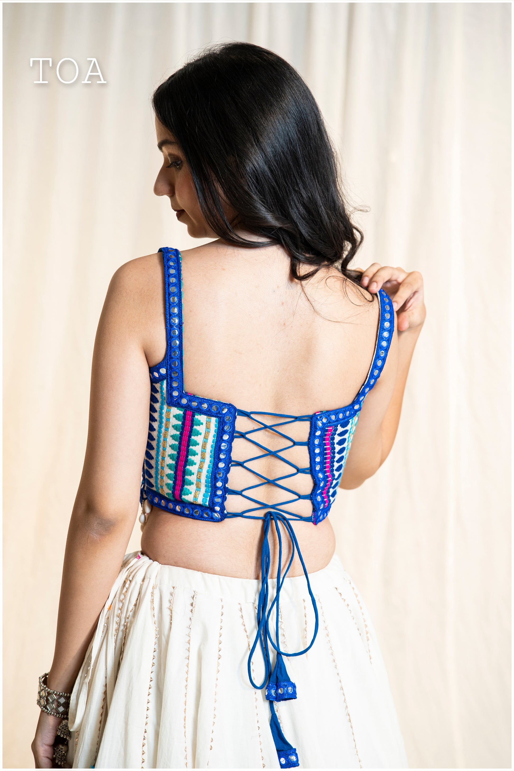 Kashmiri Top & Skirt - Blue & Off White Multi