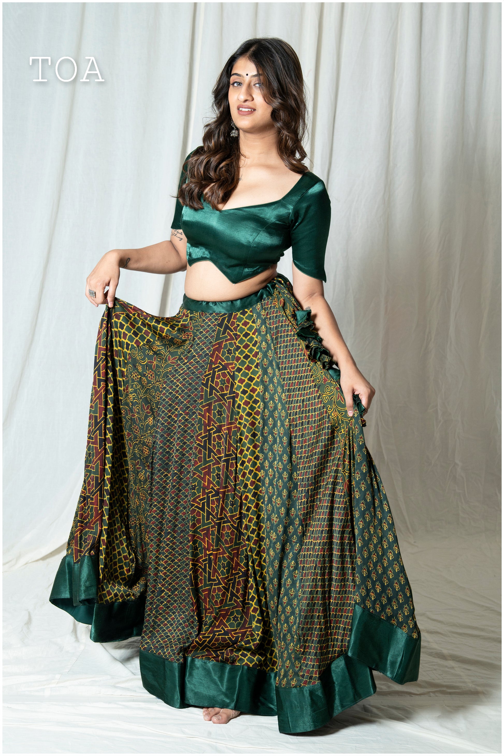 Mashru Silk Ajrak Gamthi Skirt - Green