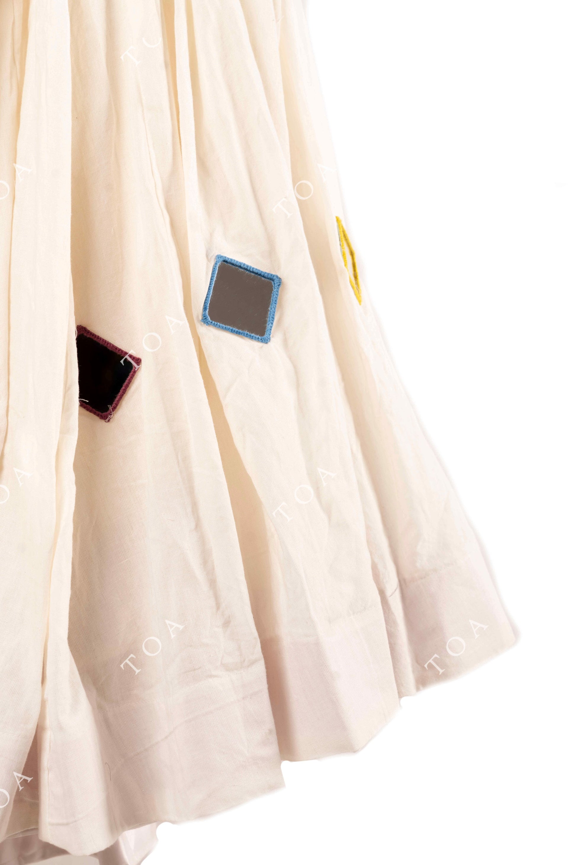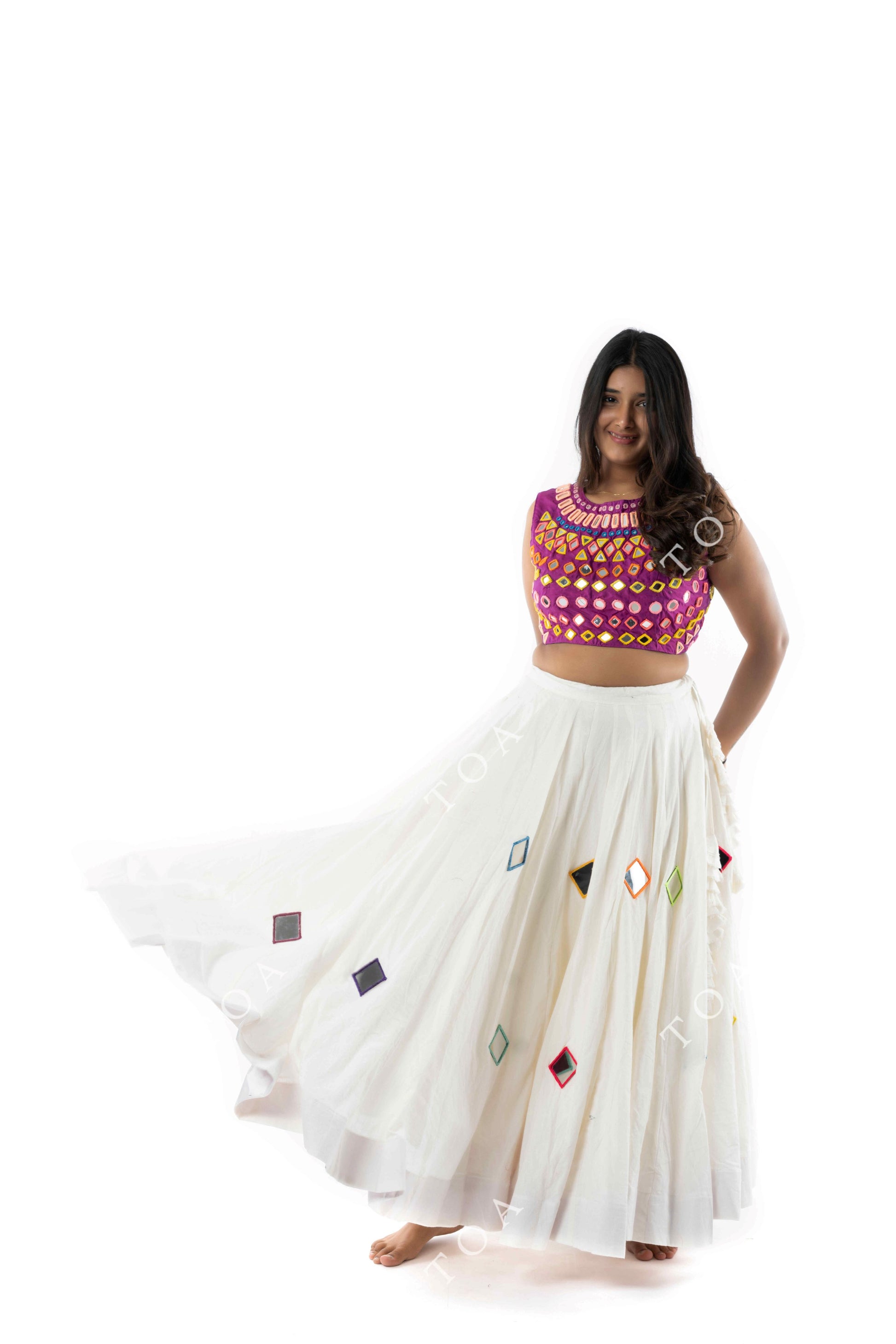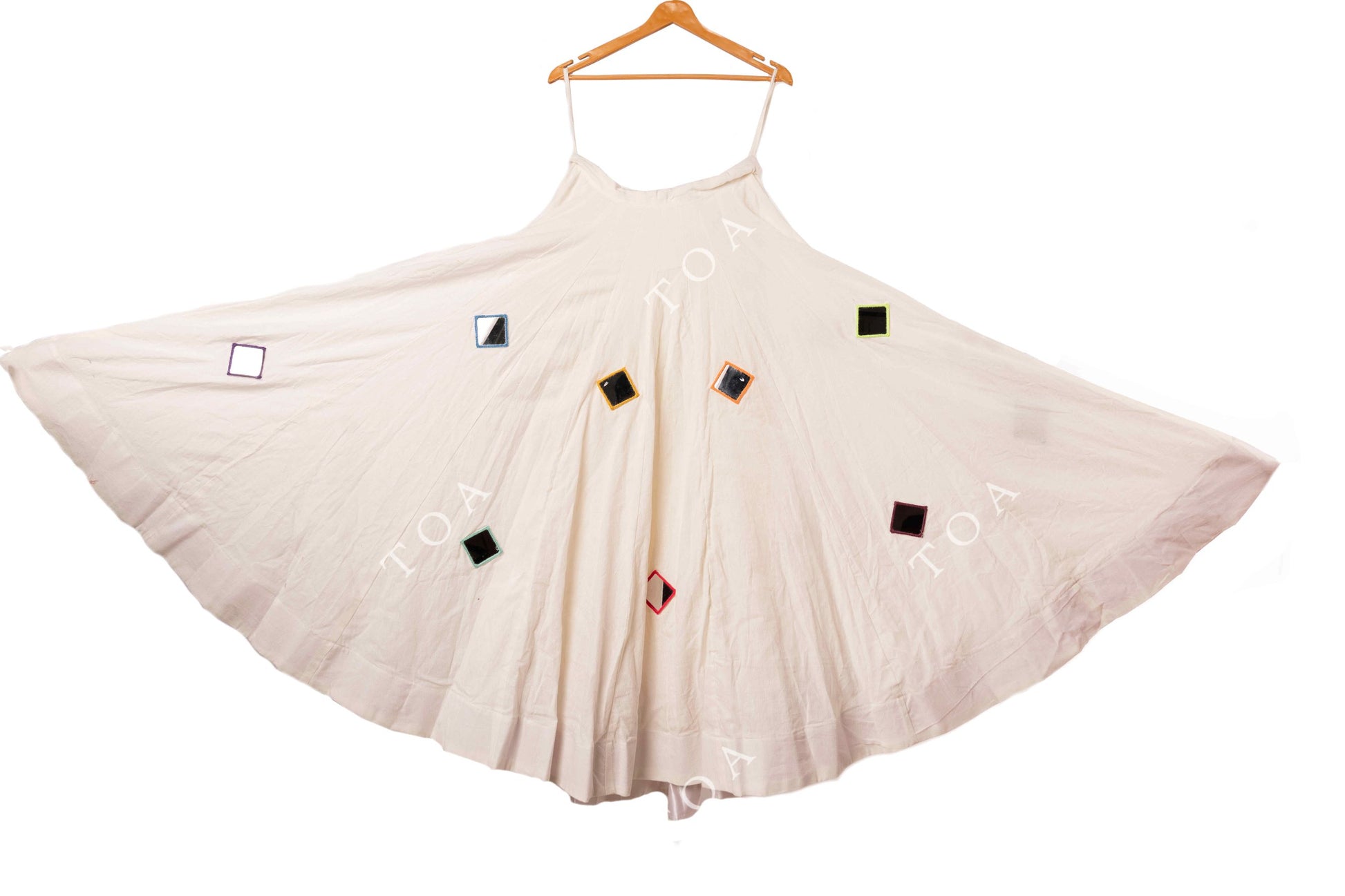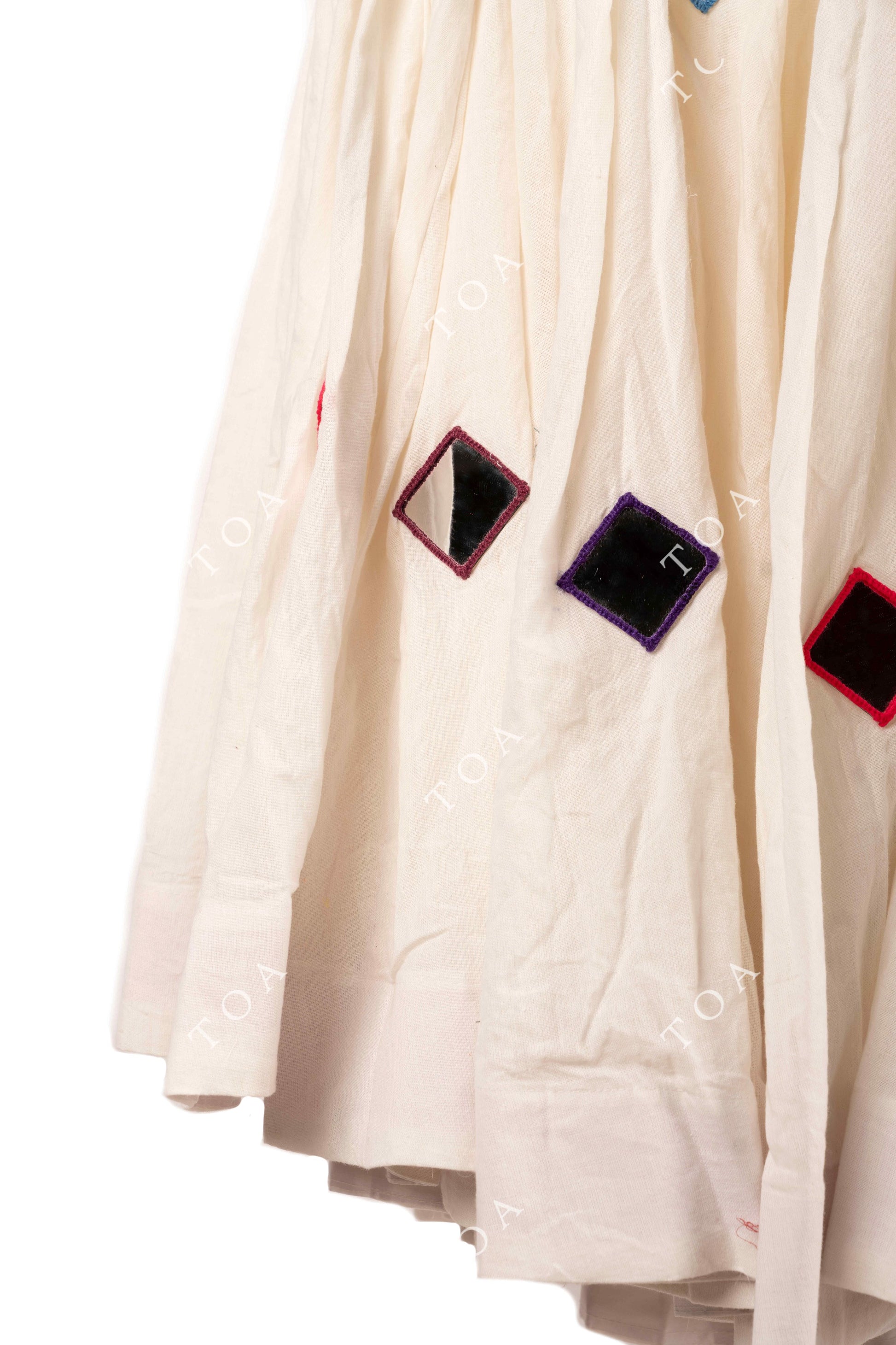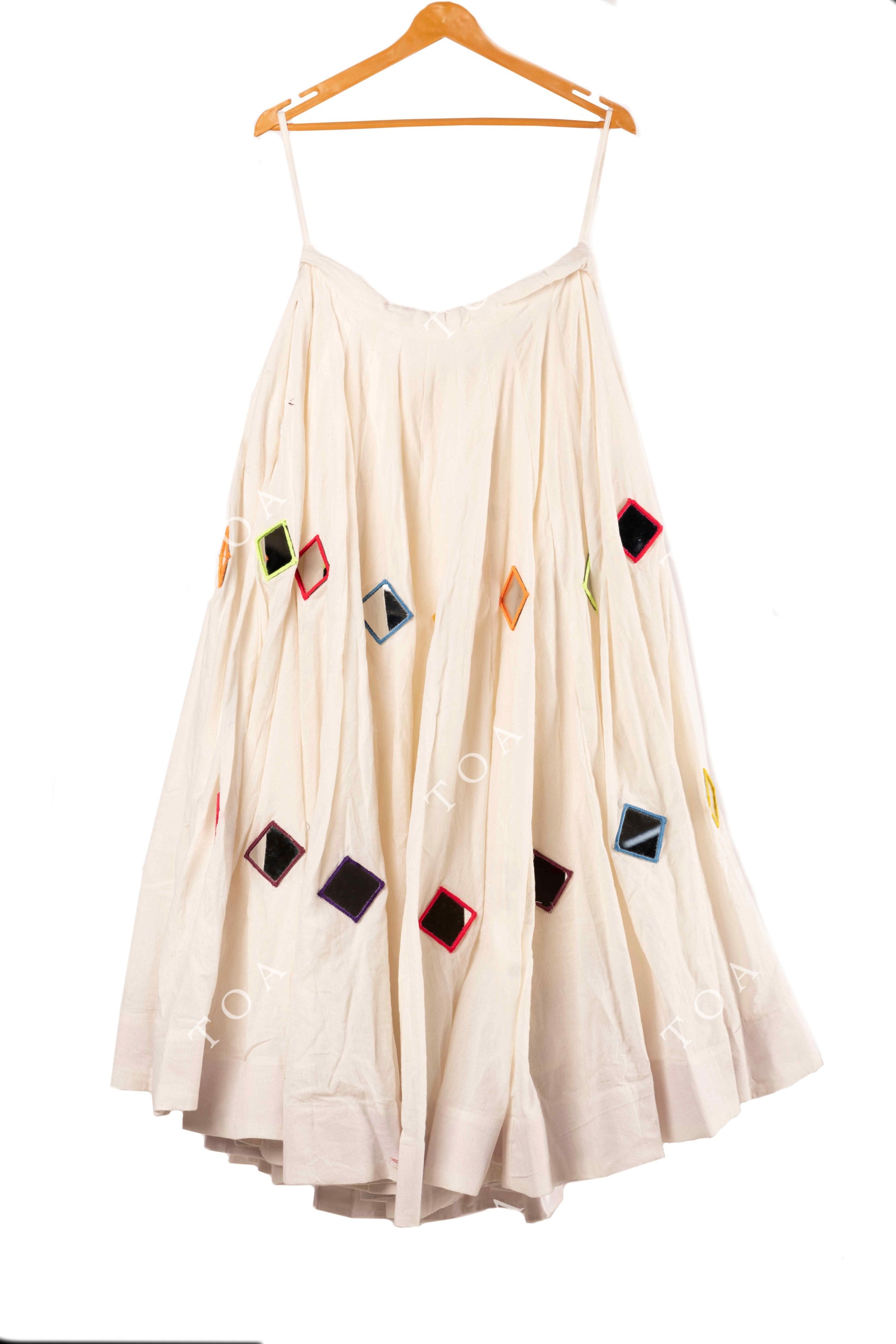 Cream White Multi Mirror Work Skirt 10+ Mtrs Flare