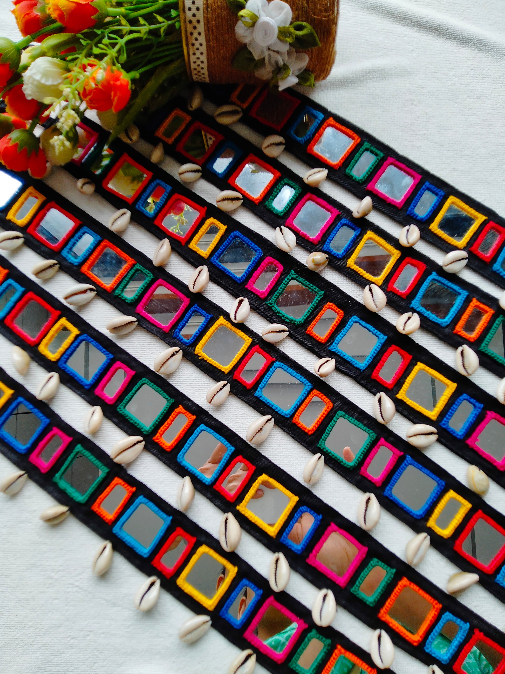 This Mirror Waist Belt features intricate real mirror handwork, extending up to 23 inches in length. Crafted from high-quality material, it offers durability and a distinctive antique finish. Perfect for adding a traditional yet elegant touch to your outfit, this belt combines craftsmanship with lasting style.