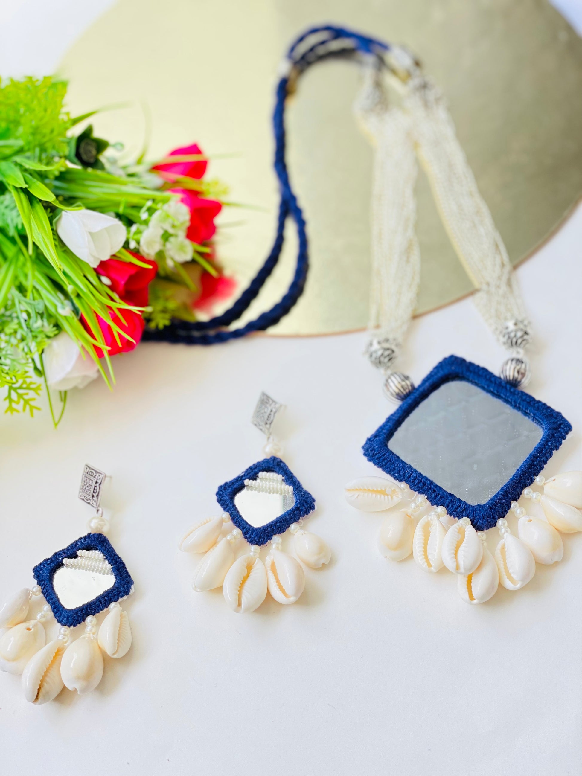 This Mirror & Shells Necklace combines intricate mirror work with delicate shell detailing, creating a unique and trendy accessory. The adjustable dori ensures a customized, comfortable fit, making it suitable for various occasions. Expertly crafted, this necklace adds a refined touch to your ensemble while offering versatility and style.
