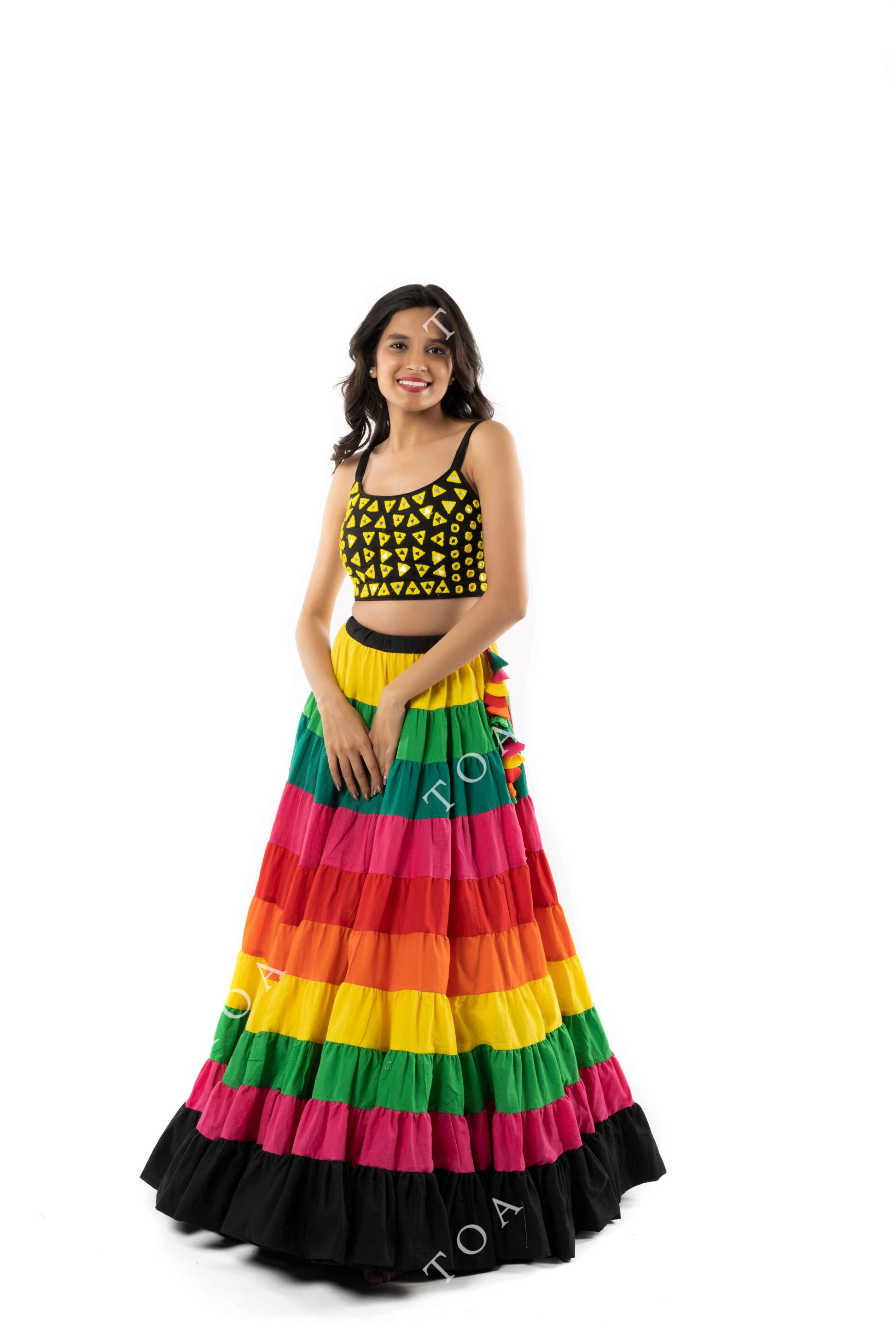 Discover the elegance and vibrancy of our top-selling skirt set, designed to make you stand out on any occasion. Crafted from high-quality cambric fabric, the skirt features a stunning array of 10 different color layers. Each hue is carefully chosen to be vibrant and eye-catching, creating a visually delightful experience.