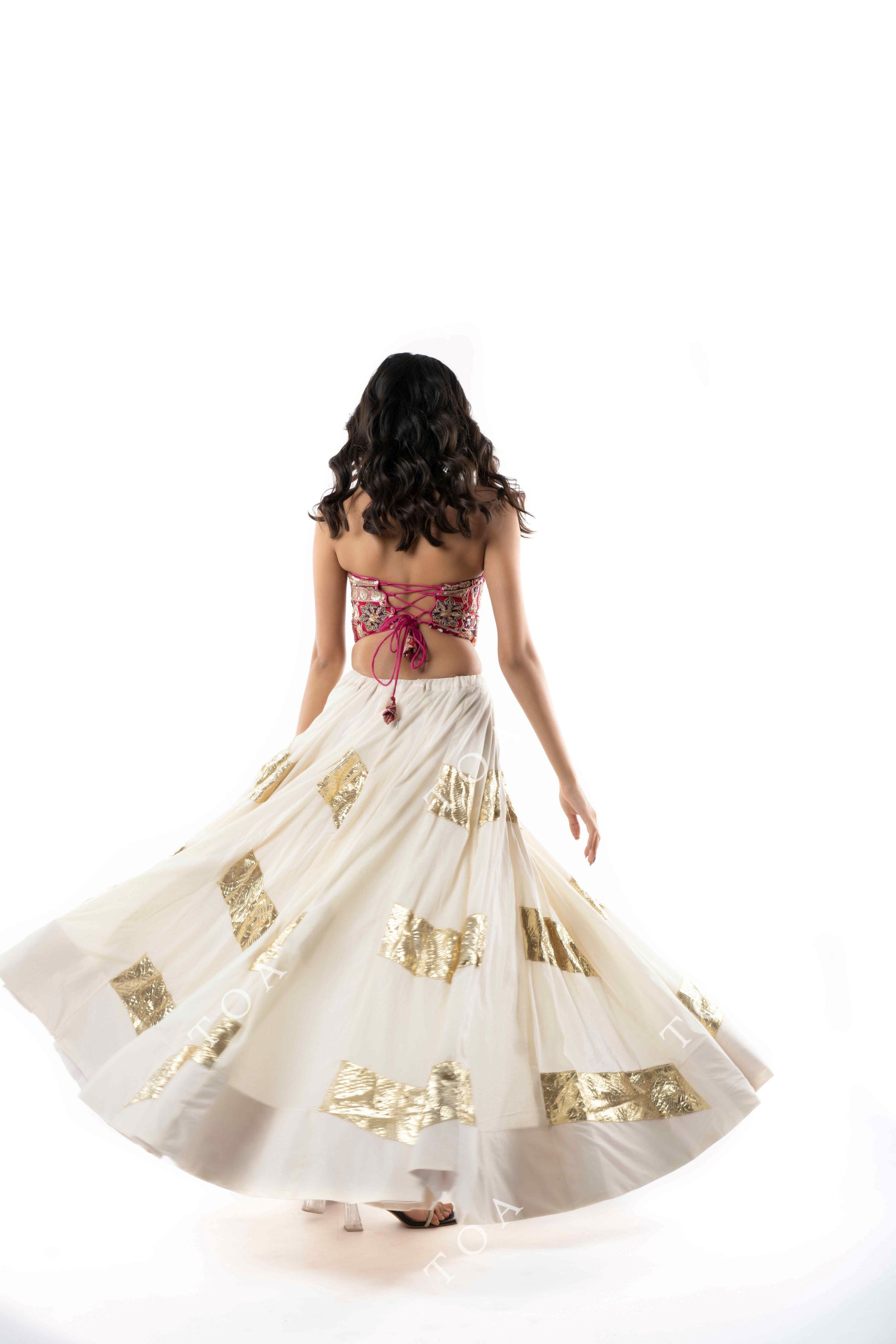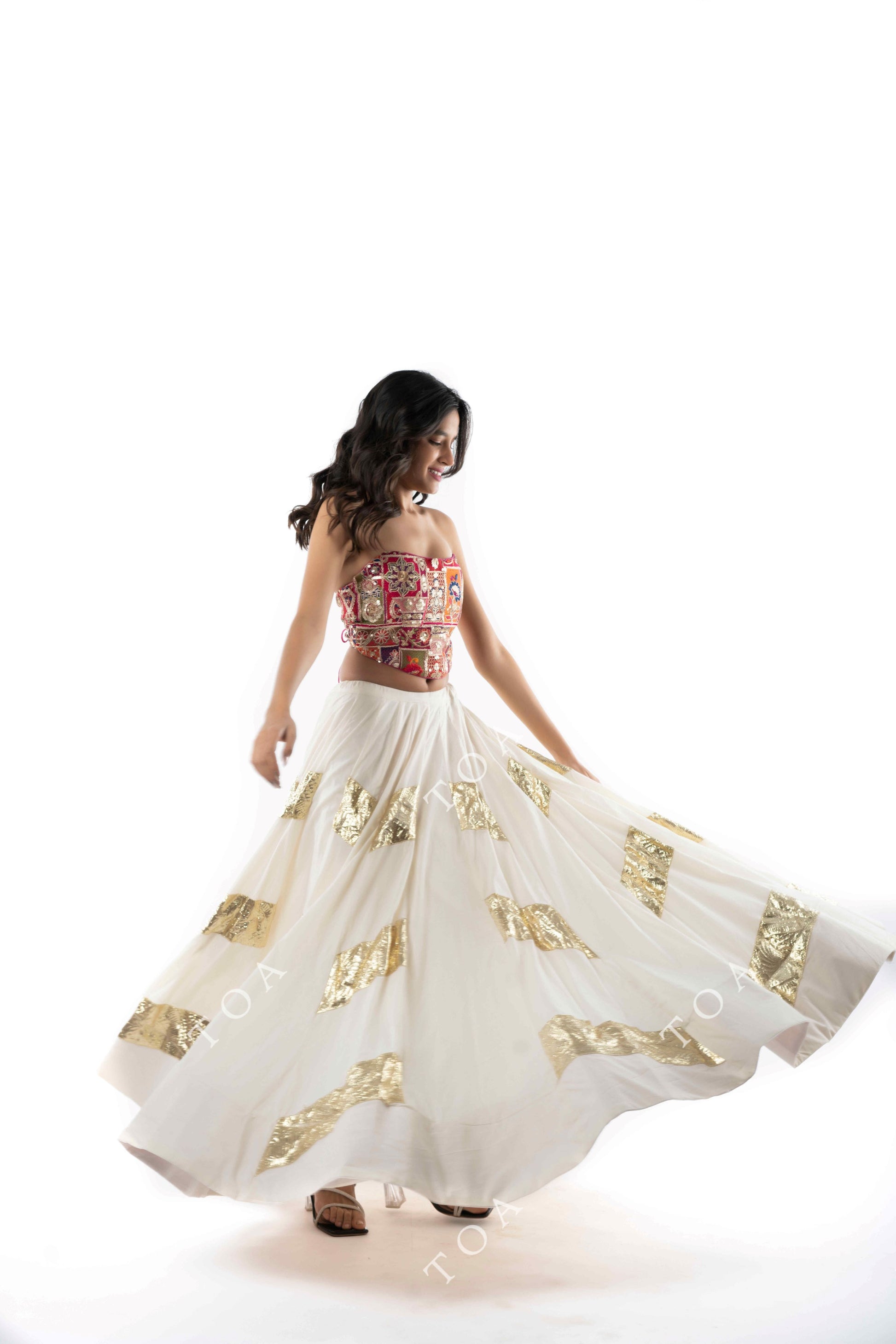 Cream White Alternate Lampi Kalli 10+ Mtrs Flare Skirt