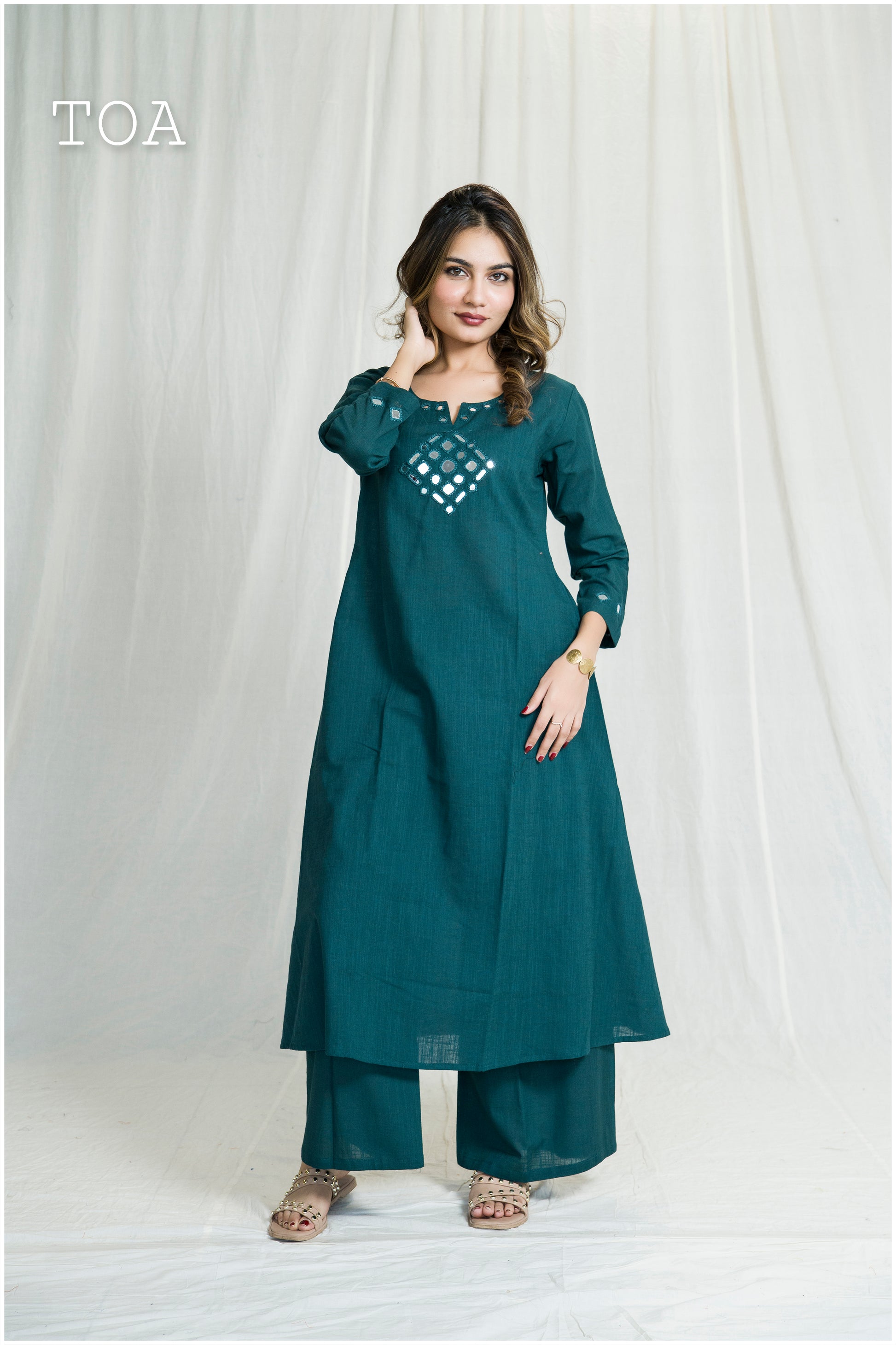 This exquisite 2-piece set is crafted from premium linen silk fabric, featuring delicate handwork of gota, aari, and sequins. The charming rose motif adds a touch of elegance, making it a truly unique and standout outfit for any occasion.