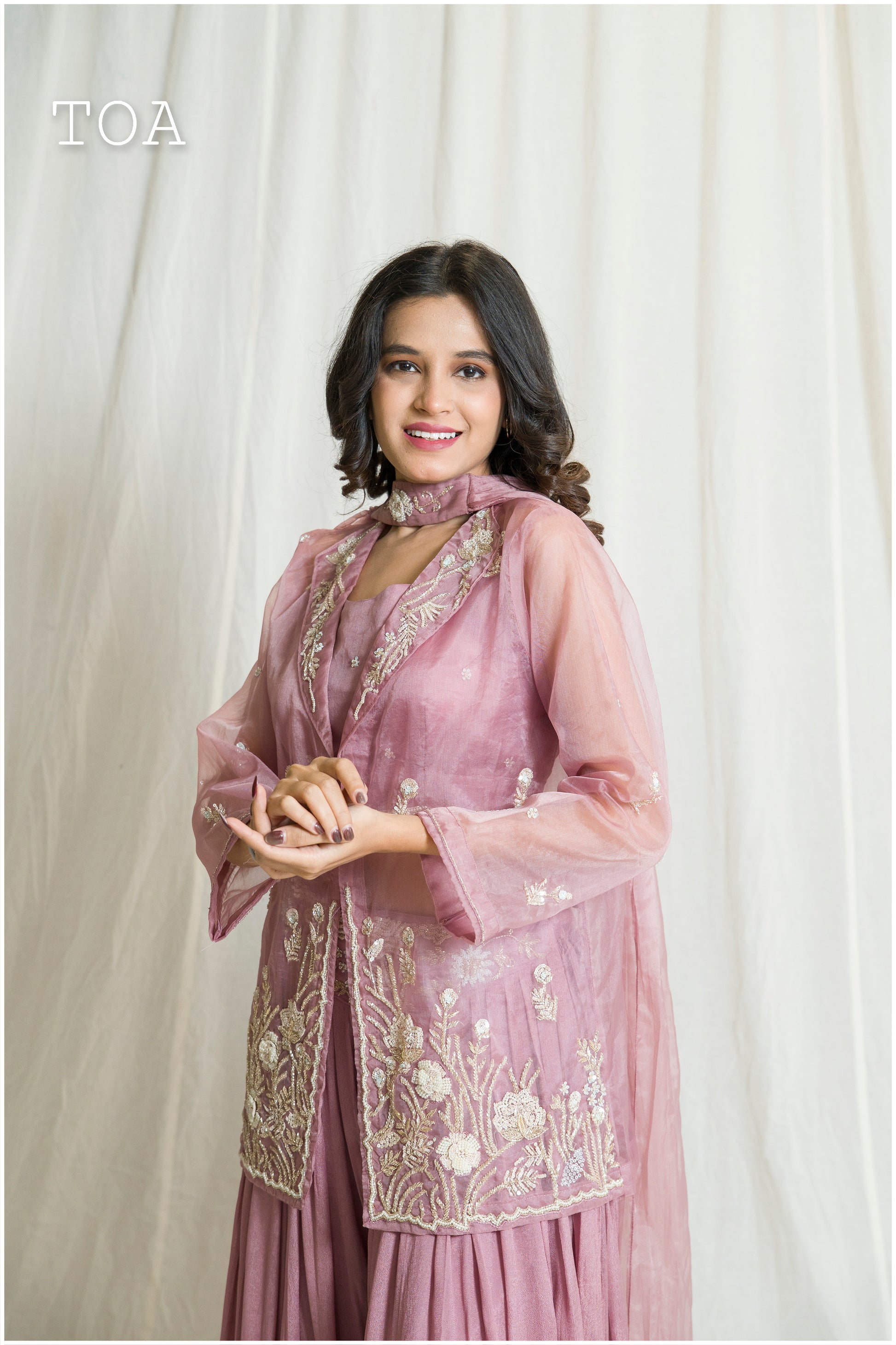 Introducing our beautiful Lilac organza Indo-Western set — a graceful 4-piece ensemble perfect for any occasion or festival.