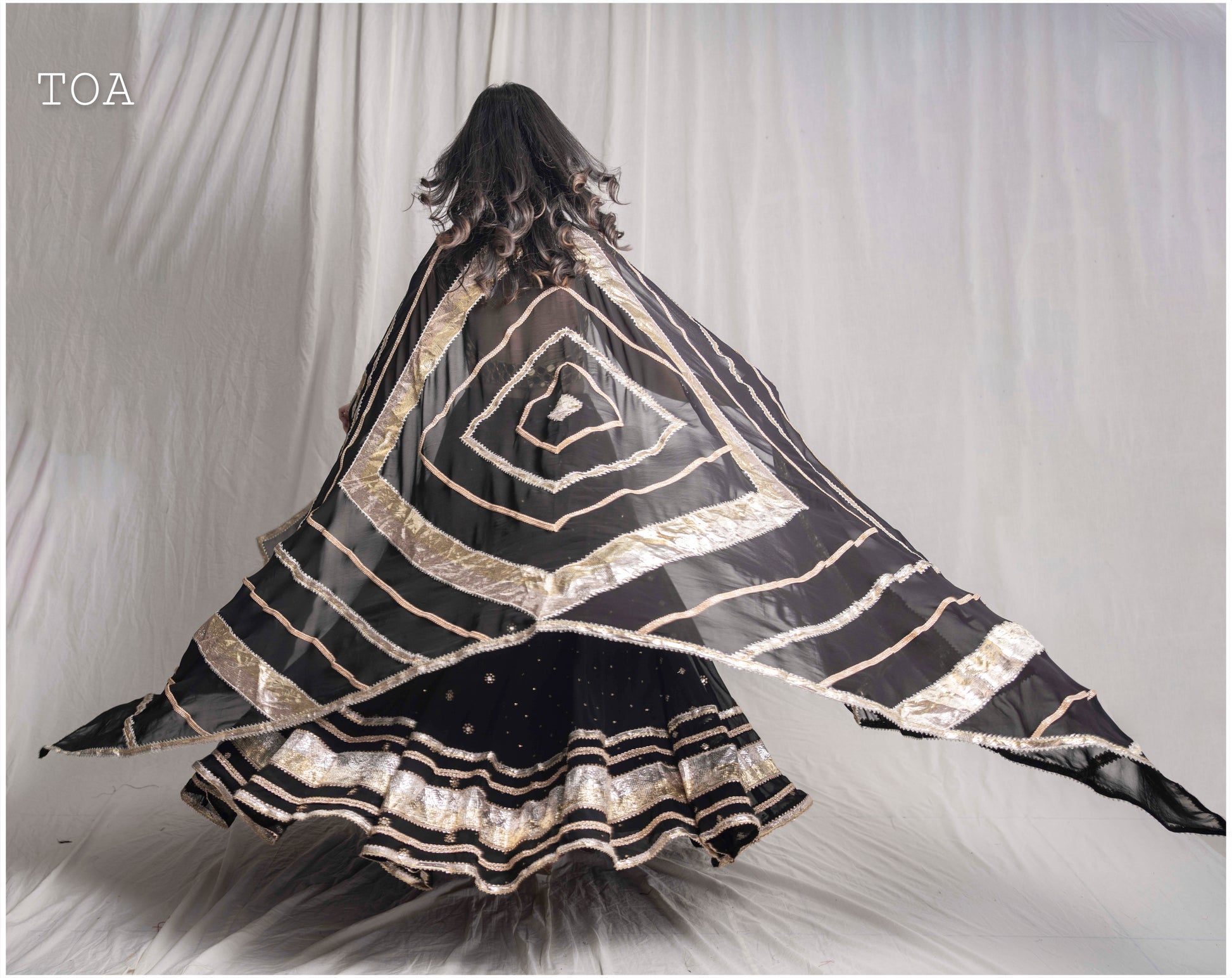 • Skirt: Georgette sequins fabric with 24 kallis, 9+ meters of flare, and a real Lampi & Jardosi border.