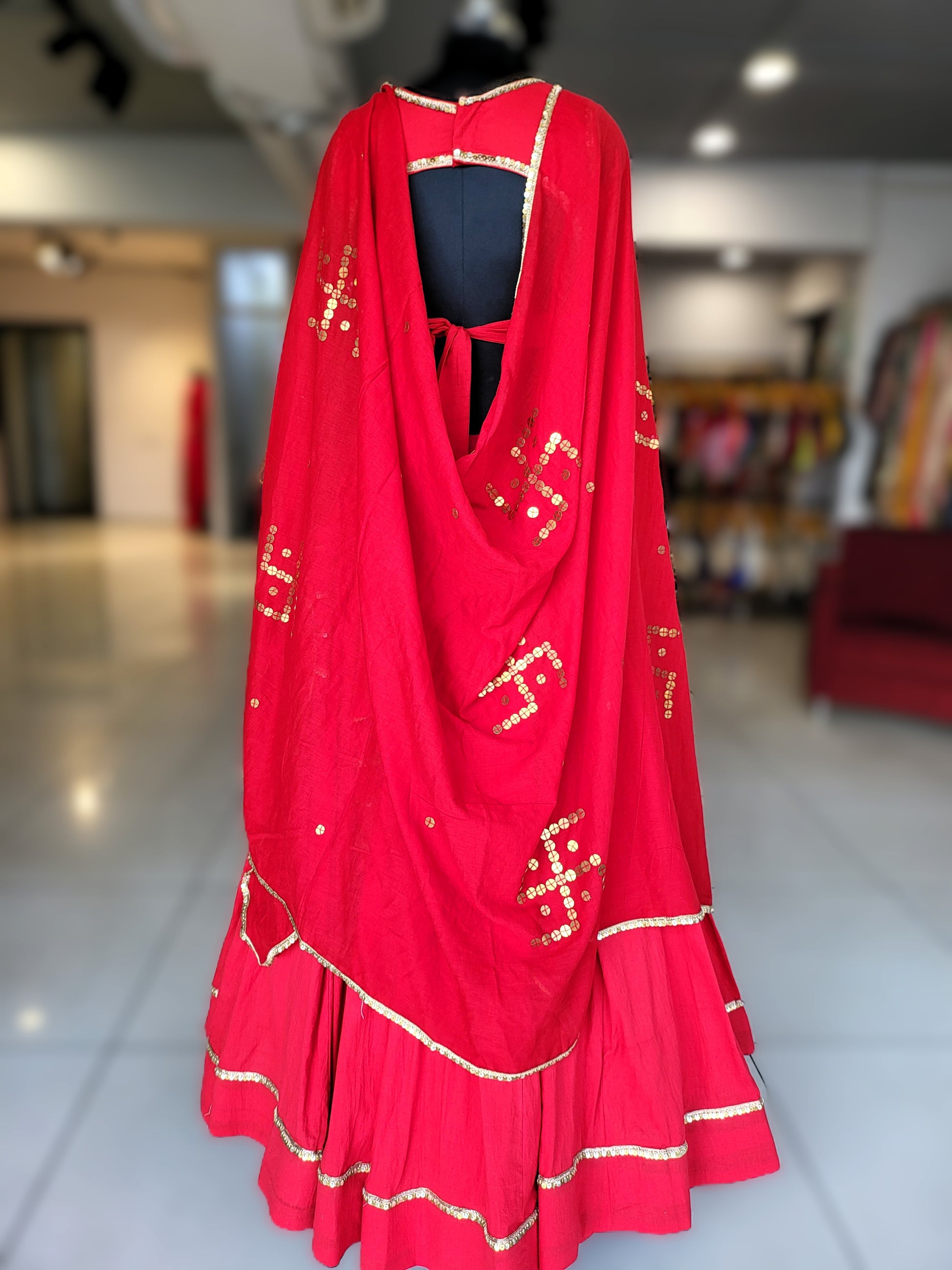 Completing the set is a soft Mal Cotton dupatta, adorned with scattered hand coin work and finished with a stunning hanging coin lace along the edges, adding just the right amount of festive sparkle.