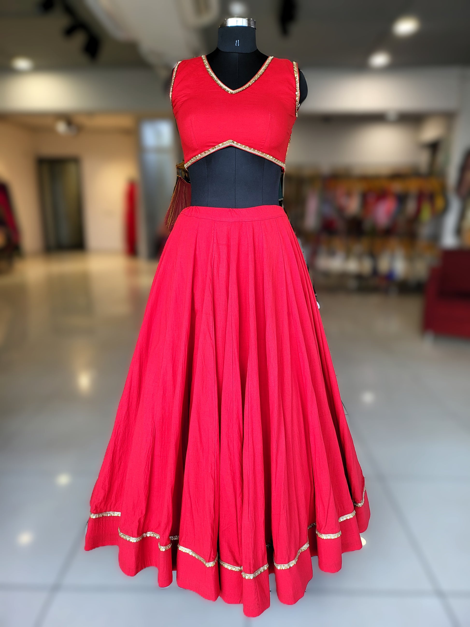 The skirt, stitched from premium cambric fabric, features an impressive 24-kali construction, offering a grand flare of over 9 meters. Detailed with a delicate coin border at the hem, the skirt comes alive beautifully when you twirl, creating an unforgettable statement.