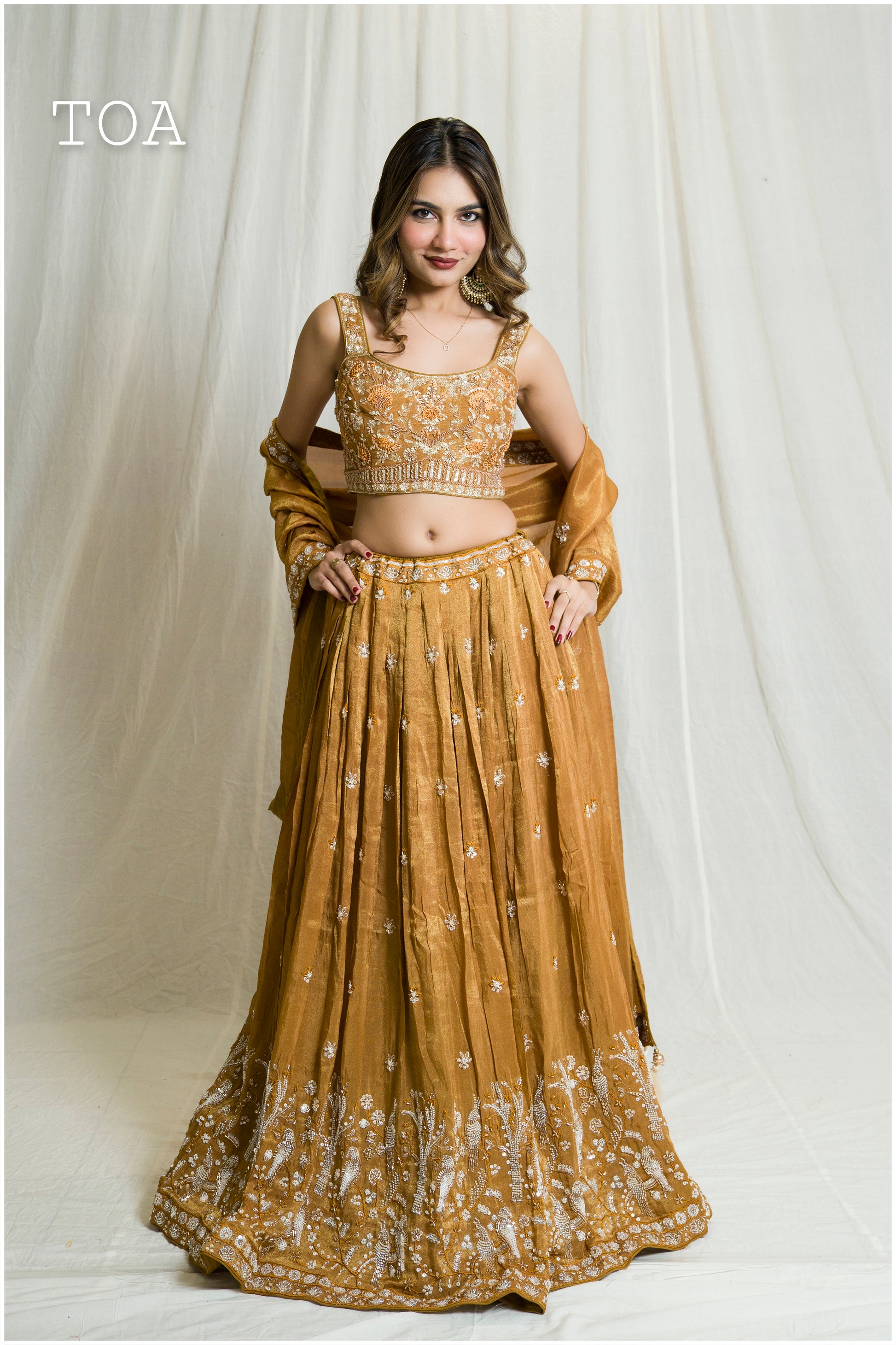 Introducing a beautiful dry mehendi-coloured lehenga set,