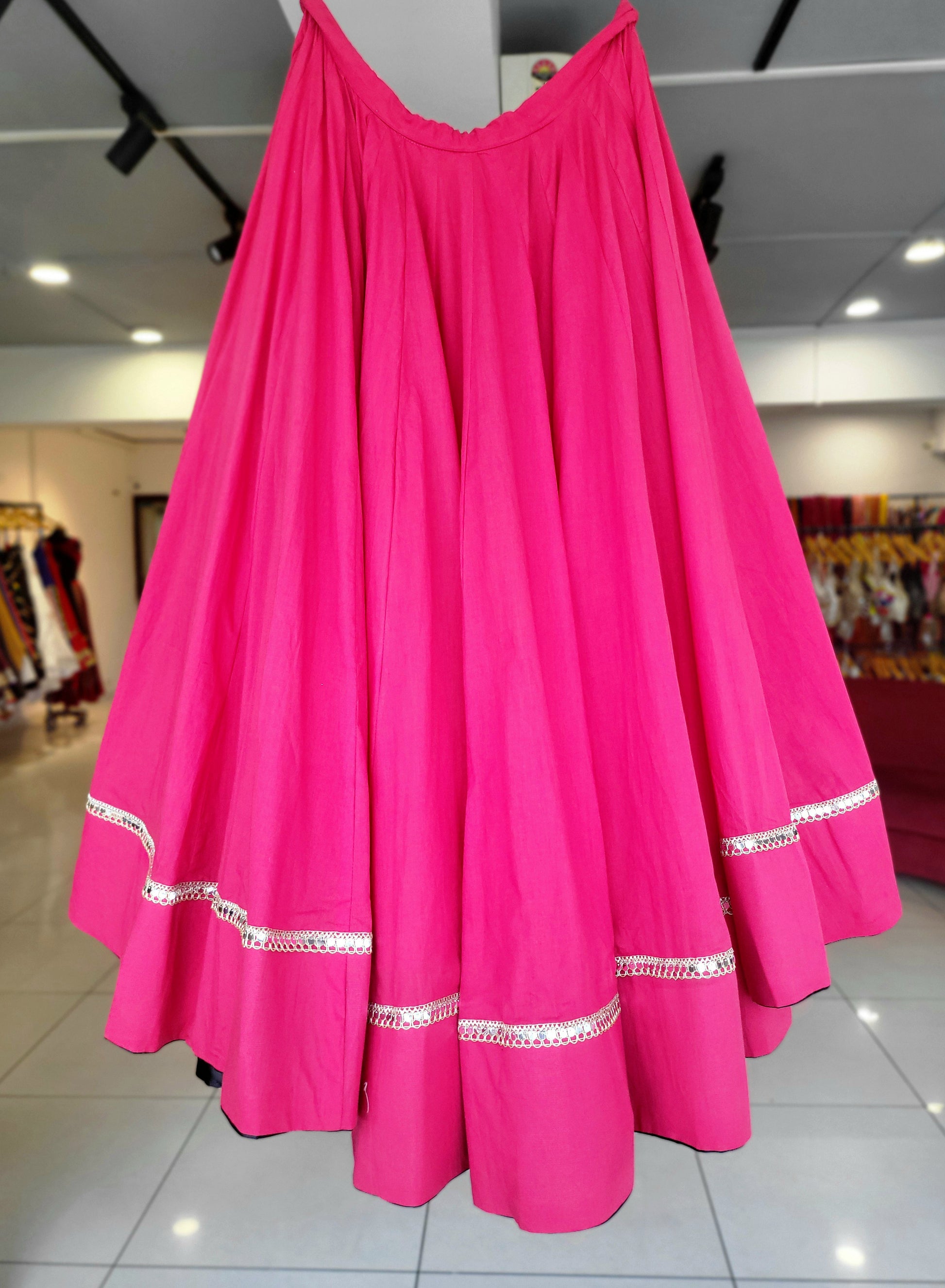 "Discover the elegance of tradition with our collection of 40 exquisite Kallis skirts, boasting a generous flare of over 15 meters. Each skirt features charming pockets and intricate Abhla work at the hem, making it a perfect choice not just for Navratri, but for any festive occasion or wedding. Choose from a vibrant array of bright, pastel, and traditional hues to add a touch of grace to your wardrobe."